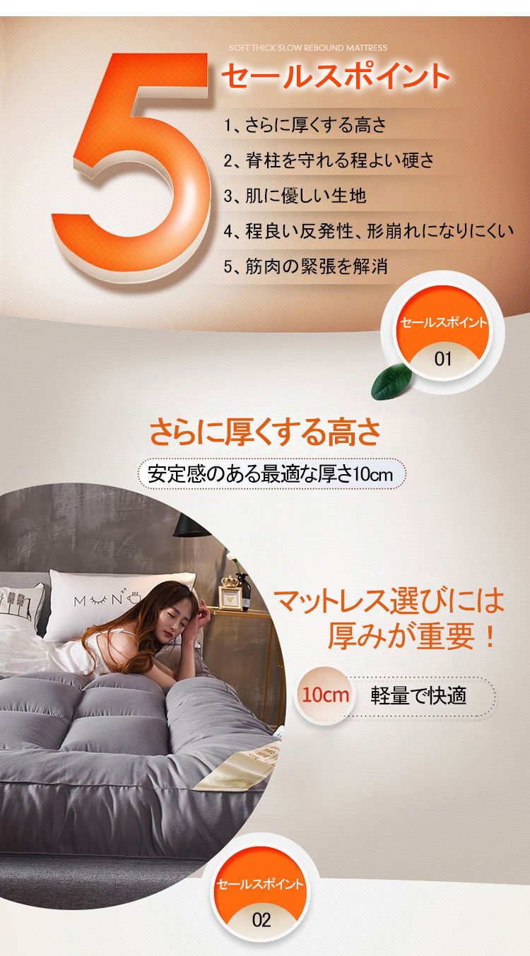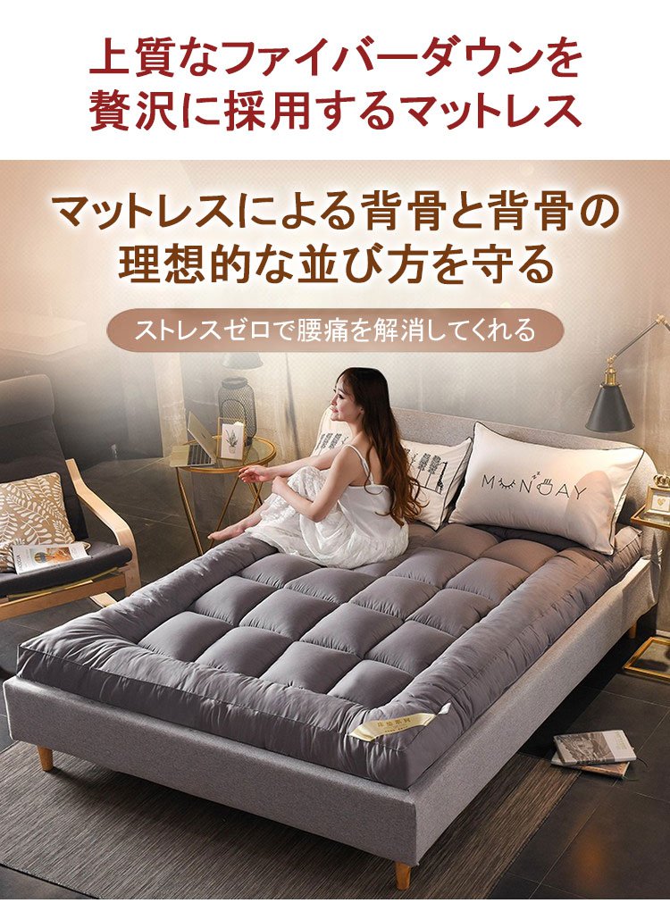 【ファイバーダウンマットレス】厚手、脊柱を保護、睡眠質を改善、体圧を分散、肌触りよい